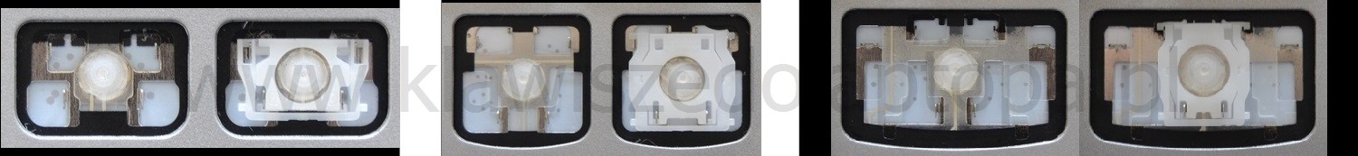 - Om het juiste model te kiezen, vergelijk de lege plek op jouw toetsenbord met de onderstaande foto’s, of verwijder de toets “A” – daaronder zit altijd een middelgrote clip.
