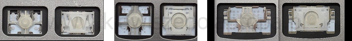 - Om het juiste model te kiezen, vergelijk de lege plek op jouw toetsenbord met de onderstaande foto’s, of verwijder de toets “A” – daaronder zit altijd een middelgrote clip.