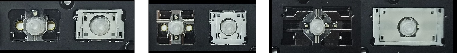 - Bij de meeste toetsenborden die er van buiten identiek uitzien, werden verschillende soorten clips onder de toetsen gebruikt.