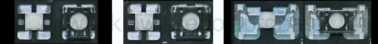 - Om het juiste model te kiezen, vergelijk de lege plek op jouw toetsenbord met de onderstaande foto’s, of verwijder de toets “A” – daaronder zit altijd een middelgrote clip.