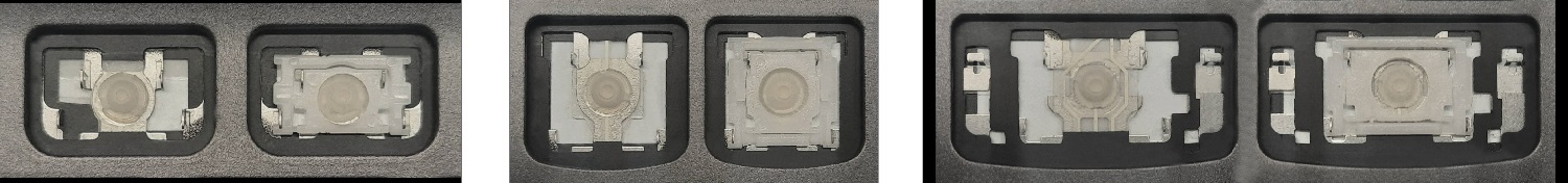 - Om het juiste model te kiezen, vergelijk de lege plek op jouw toetsenbord met de onderstaande foto’s, of verwijder de toets “A” – daaronder zit altijd een middelgrote clip.