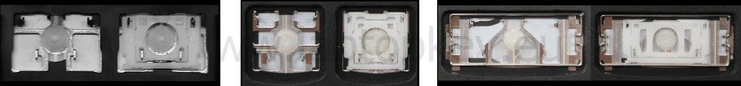 - Bij de meeste toetsenborden die er van buiten identiek uitzien, werden verschillende soorten clips onder de toetsen gebruikt.