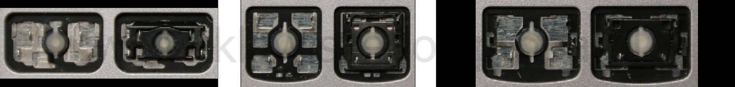- Bij de meeste toetsenborden die er van buiten identiek uitzien, werden verschillende soorten clips onder de toetsen gebruikt.
