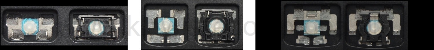 - Om het juiste model te kiezen, vergelijk de lege plek op jouw toetsenbord met de onderstaande foto’s, of verwijder de toets “A” – daaronder zit altijd een middelgrote clip.