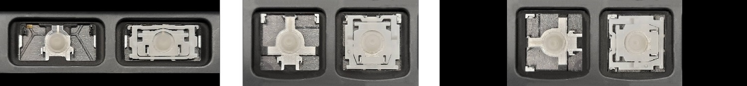 - Bij de meeste toetsenborden die er van buiten identiek uitzien, werden verschillende soorten clips onder de toetsen gebruikt.
