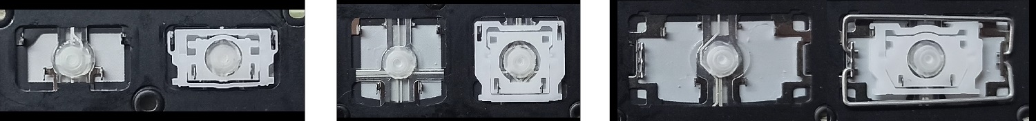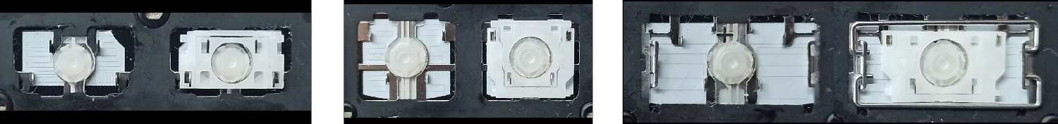 - Bij de meeste toetsenborden die er van buiten identiek uitzien, werden verschillende soorten clips onder de toetsen gebruikt.