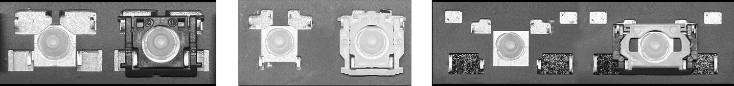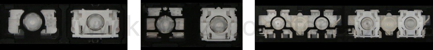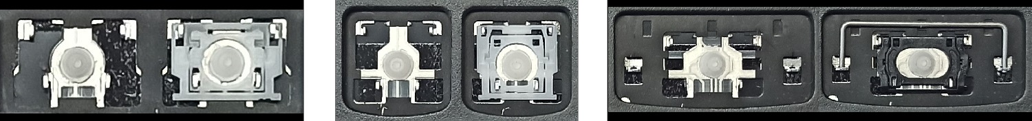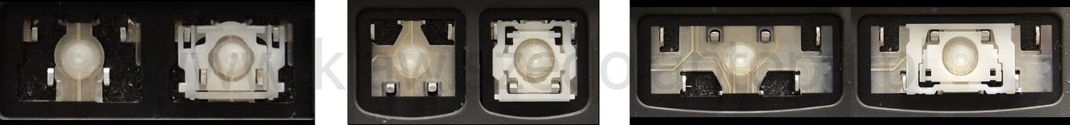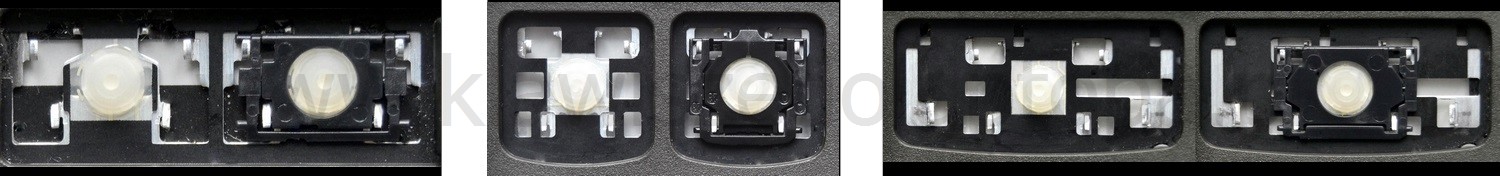 - Bij de meeste toetsenborden die er van buiten identiek uitzien, werden verschillende soorten clips onder de toetsen gebruikt.
