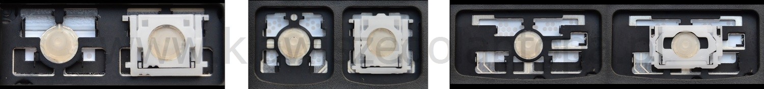 - Om het juiste model te kiezen, vergelijk de lege plek op jouw toetsenbord met de onderstaande foto’s, of verwijder de toets “A” – daaronder zit altijd een middelgrote clip.