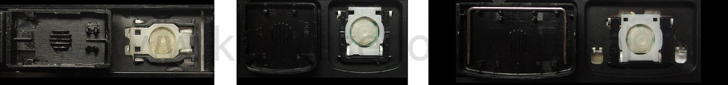 - Om het juiste model te kiezen, vergelijk de lege plek op jouw toetsenbord met de onderstaande foto’s, of verwijder de toets “A” – daaronder zit altijd een middelgrote clip.