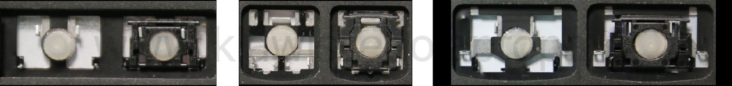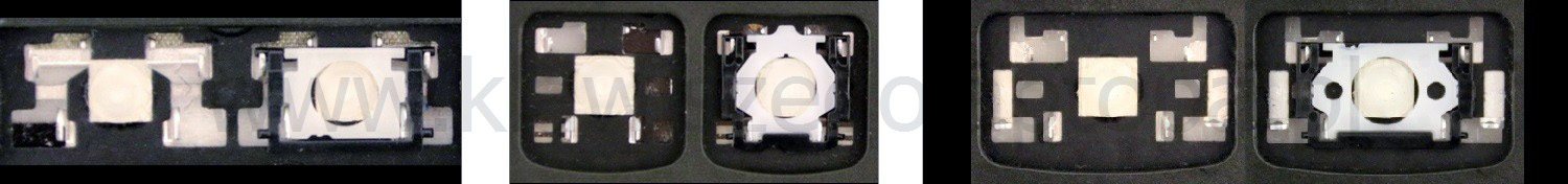 - Bij de meeste toetsenborden die er van buiten identiek uitzien, werden verschillende soorten clips onder de toetsen gebruikt.