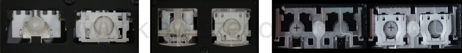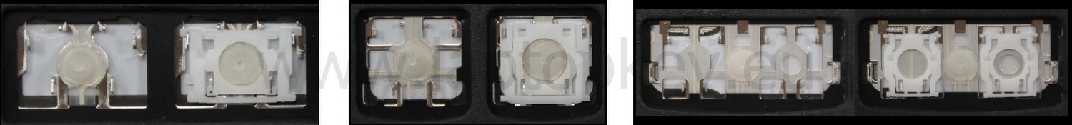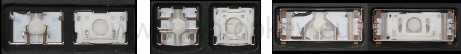 - Bij de meeste toetsenborden die er van buiten identiek uitzien, werden verschillende soorten clips onder de toetsen gebruikt.