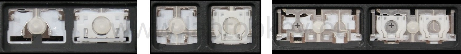 - Om het juiste model te kiezen, vergelijk de lege plek op jouw toetsenbord met de onderstaande foto’s, of verwijder de toets “A” – daaronder zit altijd een middelgrote clip.