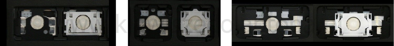- Bij de meeste toetsenborden die er van buiten identiek uitzien, werden verschillende soorten clips onder de toetsen gebruikt.