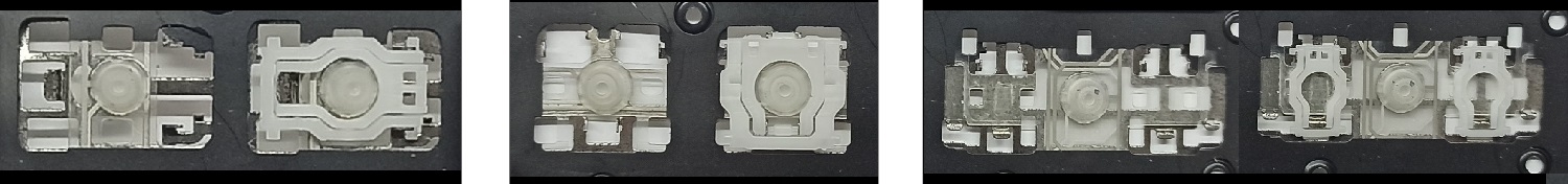 - Bij de meeste toetsenborden die er van buiten identiek uitzien, werden verschillende soorten clips onder de toetsen gebruikt.