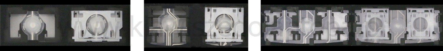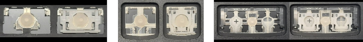 - Bij de meeste toetsenborden die er van buiten identiek uitzien, werden verschillende soorten clips onder de toetsen gebruikt.