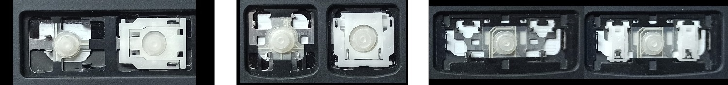 - Bij de meeste toetsenborden die er van buiten identiek uitzien, werden verschillende soorten clips onder de toetsen gebruikt.