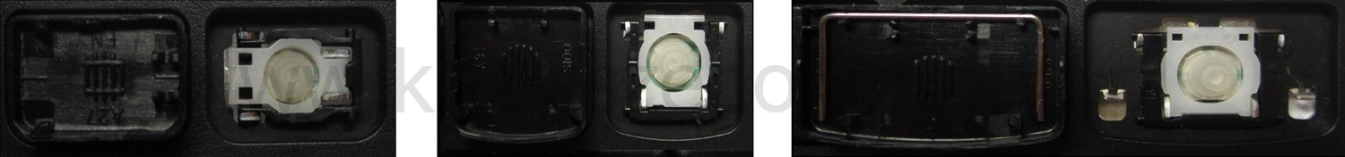 - Om het juiste model te kiezen, vergelijk de lege plek op jouw toetsenbord met de onderstaande foto’s, of verwijder de toets “A” – daaronder zit altijd een middelgrote clip.