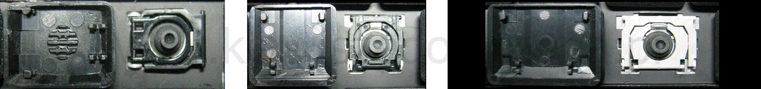 - Om het juiste model te kiezen, vergelijk de lege plek op jouw toetsenbord met de onderstaande foto’s, of verwijder de toets “A” – daaronder zit altijd een middelgrote clip.
