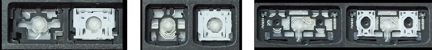 - Bij de meeste toetsenborden die er van buiten identiek uitzien, werden verschillende soorten clips onder de toetsen gebruikt.