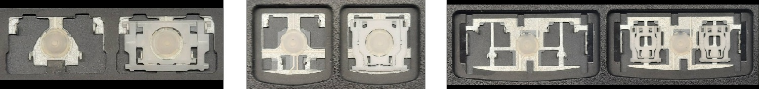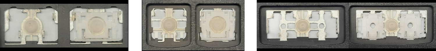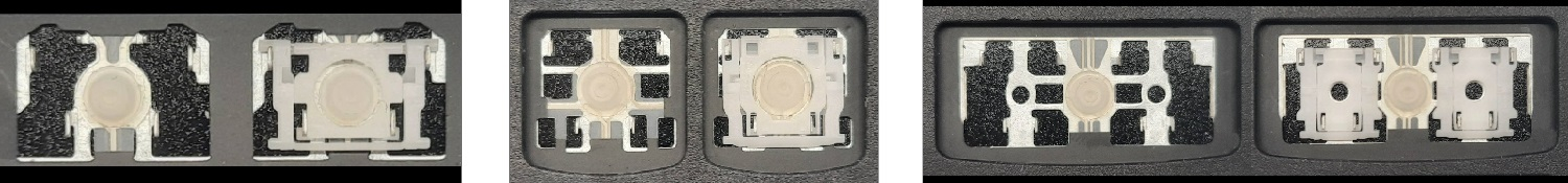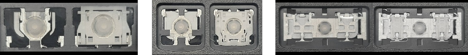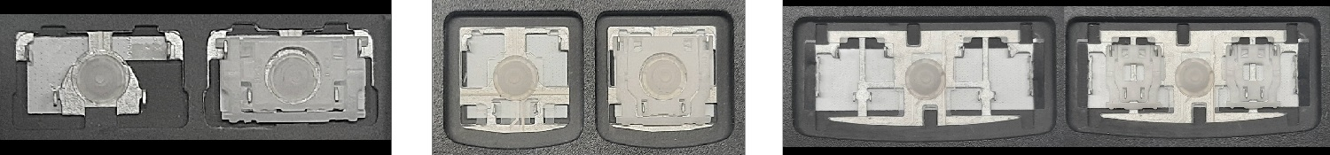 - Bij de meeste toetsenborden die er van buiten identiek uitzien, werden verschillende soorten clips onder de toetsen gebruikt.