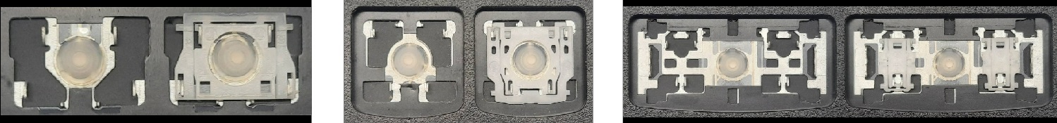 - Om het juiste model te kiezen, vergelijk de lege plek op jouw toetsenbord met de onderstaande foto’s, of verwijder de toets “A” – daaronder zit altijd een middelgrote clip.