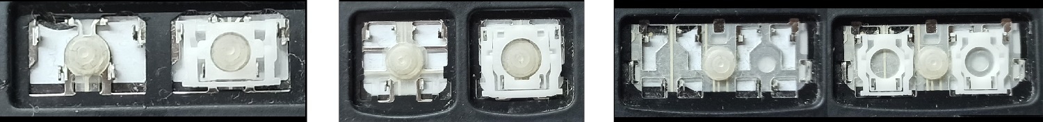 - Bij de meeste toetsenborden die er van buiten identiek uitzien, werden verschillende soorten clips onder de toetsen gebruikt.