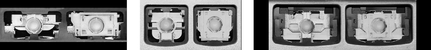 - Bij de meeste toetsenborden die er van buiten identiek uitzien, werden verschillende soorten clips onder de toetsen gebruikt.