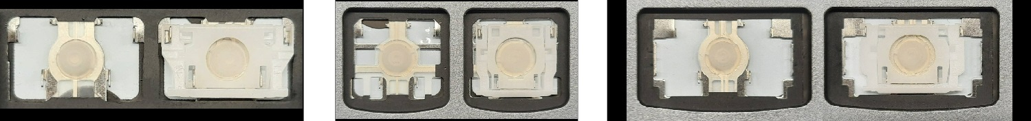 - Om het juiste model te kiezen, vergelijk de lege plek op jouw toetsenbord met de onderstaande foto’s, of verwijder de toets “A” – daaronder zit altijd een middelgrote clip.