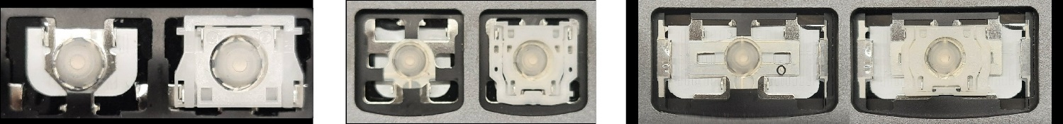 - Bij de meeste toetsenborden die er van buiten identiek uitzien, werden verschillende soorten clips onder de toetsen gebruikt.