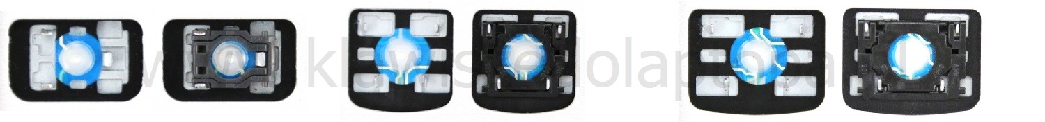 - Om het juiste model te kiezen, vergelijk de lege plek op jouw toetsenbord met de onderstaande foto’s, of verwijder de toets “A” – daaronder zit altijd een middelgrote clip.