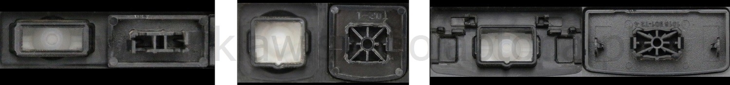 - Om het juiste model te kiezen, vergelijk de lege plek op jouw toetsenbord met de onderstaande foto’s, of verwijder de toets “A” – daaronder zit altijd een middelgrote clip.