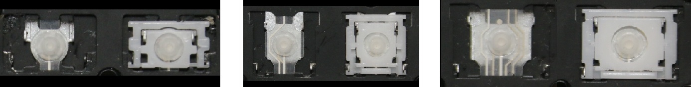 - Bij de meeste toetsenborden die er van buiten identiek uitzien, werden verschillende soorten clips onder de toetsen gebruikt.