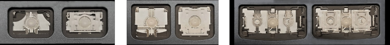 - Bij de meeste toetsenborden die er van buiten identiek uitzien, werden verschillende soorten clips onder de toetsen gebruikt.
