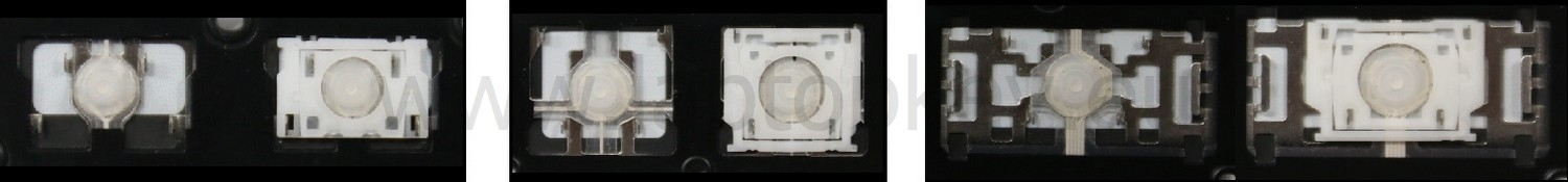 - Bij de meeste toetsenborden die er van buiten identiek uitzien, werden verschillende soorten clips onder de toetsen gebruikt.