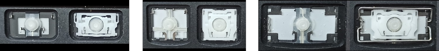 - Bij de meeste toetsenborden die er van buiten identiek uitzien, werden verschillende soorten clips onder de toetsen gebruikt.