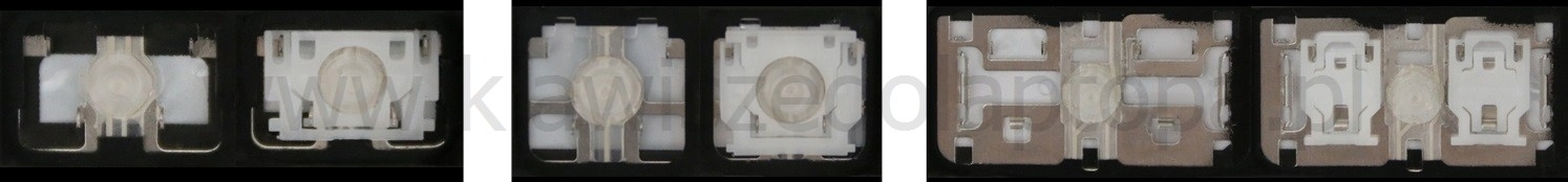 - Bij de meeste toetsenborden die er van buiten identiek uitzien, werden verschillende soorten clips onder de toetsen gebruikt.