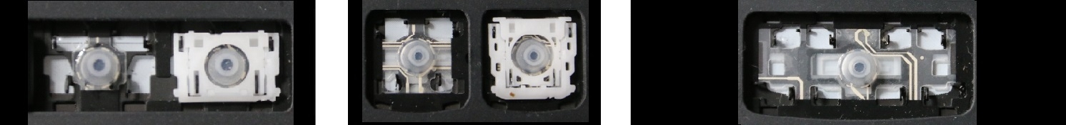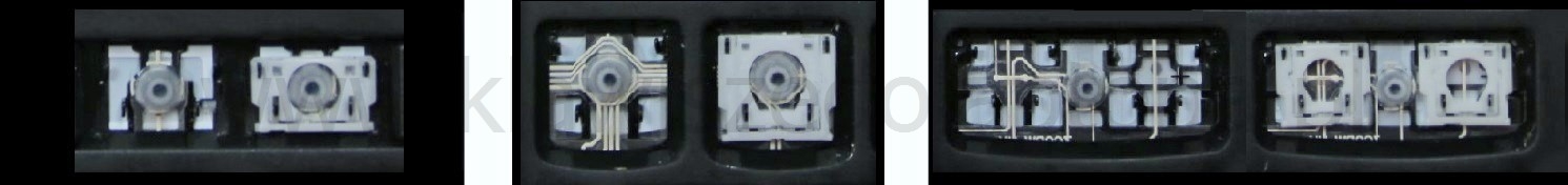 - Bij de meeste toetsenborden die er van buiten identiek uitzien, werden verschillende soorten clips onder de toetsen gebruikt.