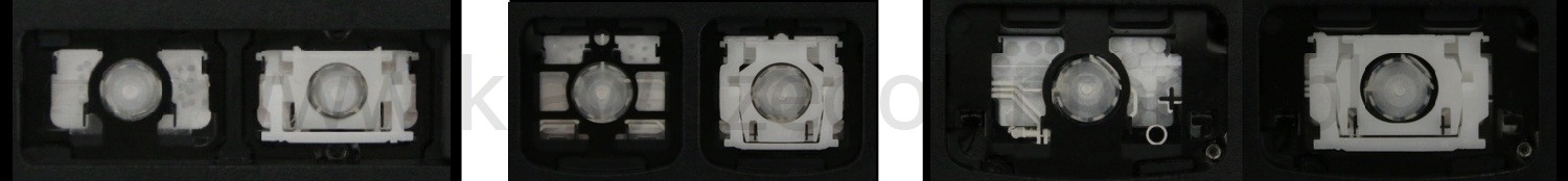 - Bij de meeste toetsenborden die er van buiten identiek uitzien, werden verschillende soorten clips onder de toetsen gebruikt.