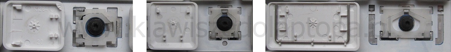 - Om het juiste model te kiezen, vergelijk de lege plek op jouw toetsenbord met de onderstaande foto’s, of verwijder de toets “A” – daaronder zit altijd een middelgrote clip.