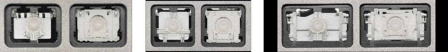 - Om het juiste model te kiezen, vergelijk de lege plek op jouw toetsenbord met de onderstaande foto’s, of verwijder de toets “A” – daaronder zit altijd een middelgrote clip.