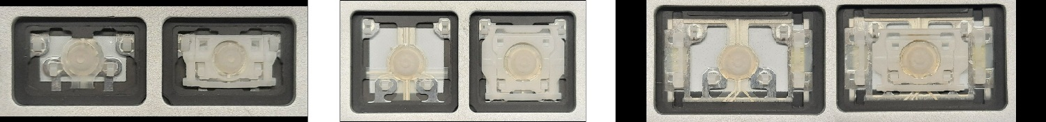 - Bij de meeste toetsenborden die er van buiten identiek uitzien, werden verschillende soorten clips onder de toetsen gebruikt.