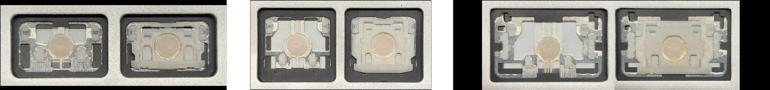 - Om het juiste model te kiezen, vergelijk de lege plek op jouw toetsenbord met de onderstaande foto’s, of verwijder de toets “A” – daaronder zit altijd een middelgrote clip.