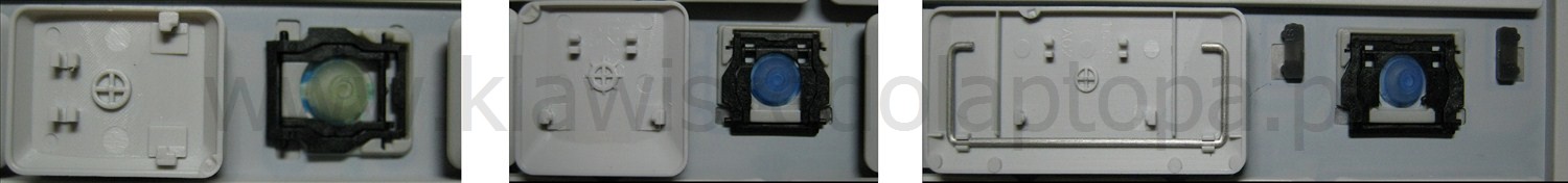 - Om het juiste model te kiezen, vergelijk de lege plek op jouw toetsenbord met de onderstaande foto’s, of verwijder de toets “A” – daaronder zit altijd een middelgrote clip.