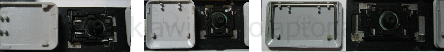 - Bij de meeste toetsenborden die er van buiten identiek uitzien, werden verschillende soorten clips onder de toetsen gebruikt.
