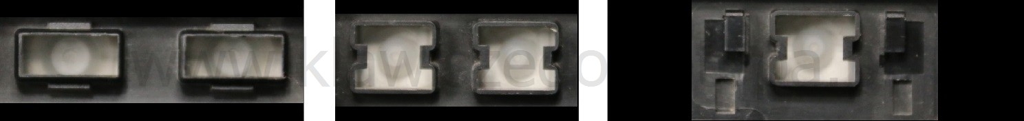- Om het juiste model te kiezen, vergelijk de lege plek op jouw toetsenbord met de onderstaande foto’s, of verwijder de toets “A” – daaronder zit altijd een middelgrote clip.