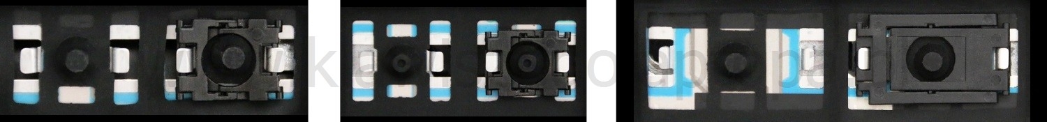- Om het juiste model te kiezen, vergelijk de lege plek op jouw toetsenbord met de onderstaande foto’s, of verwijder de toets “A” – daaronder zit altijd een middelgrote clip.