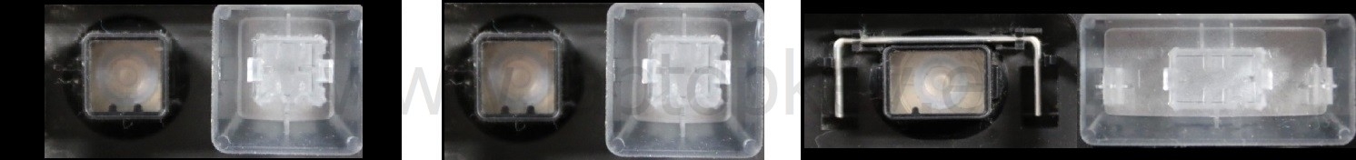 - Om het juiste model te kiezen, vergelijk de lege plek op jouw toetsenbord met de onderstaande foto’s, of verwijder de toets “A” – daaronder zit altijd een middelgrote clip.