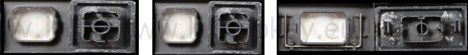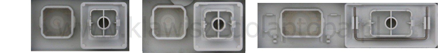 - Om het juiste model te kiezen, vergelijk de lege plek op jouw toetsenbord met de onderstaande foto’s, of verwijder de toets “A” – daaronder zit altijd een middelgrote clip.