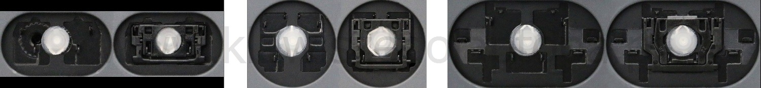 - Bij de meeste toetsenborden die er van buiten identiek uitzien, werden verschillende soorten clips onder de toetsen gebruikt.