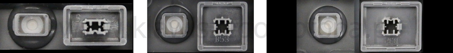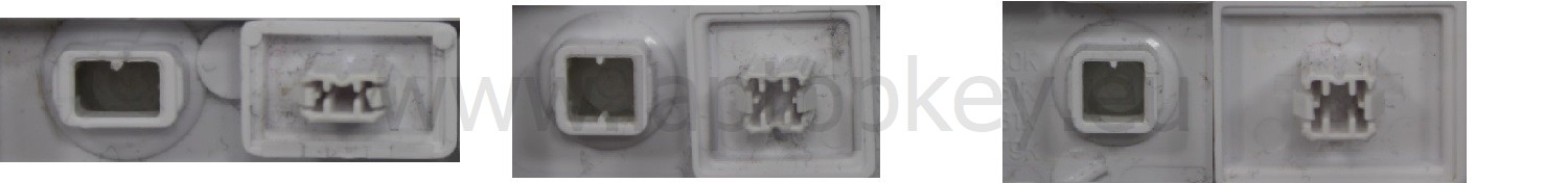 - Om het juiste model te kiezen, vergelijk de lege plek op jouw toetsenbord met de onderstaande foto’s, of verwijder de toets “A” – daaronder zit altijd een middelgrote clip.
